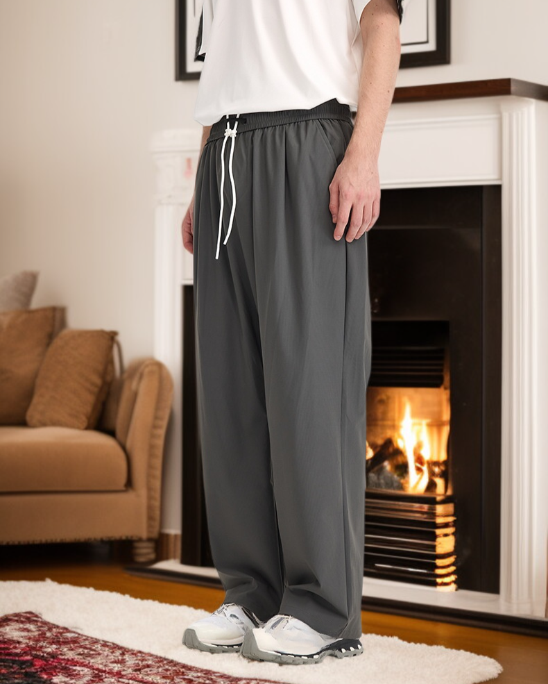 メンズカジュアルストライプストレートレッグルーズパンツ
